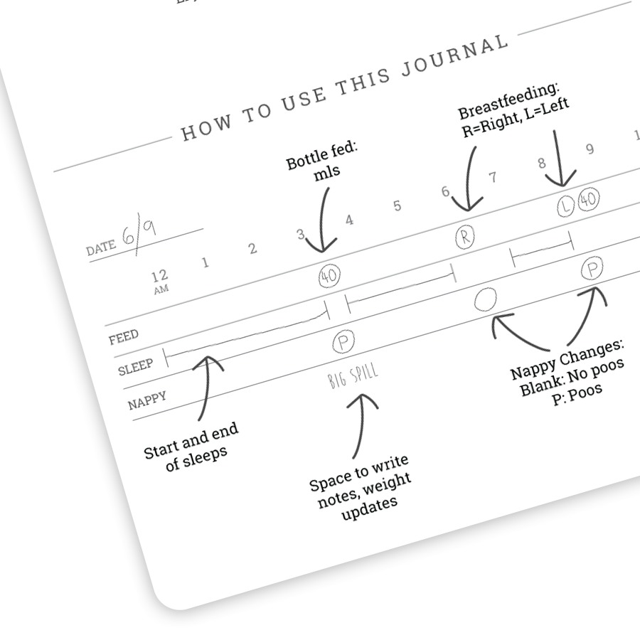 It gives you the space to simply (and quickly) track the first 8 weeks of your baby's feeds (bf or bottle), spills, nappy changes, naps, meds, weights and anything else you notice at the time - because lets face it, it can all end up a bit of a blur!