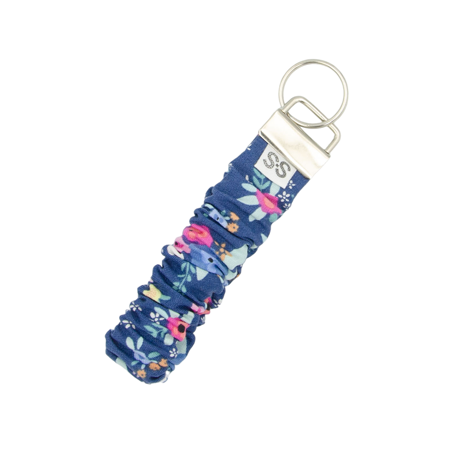 Scrunchie Hands-free Key Wristlet - Blue Floral