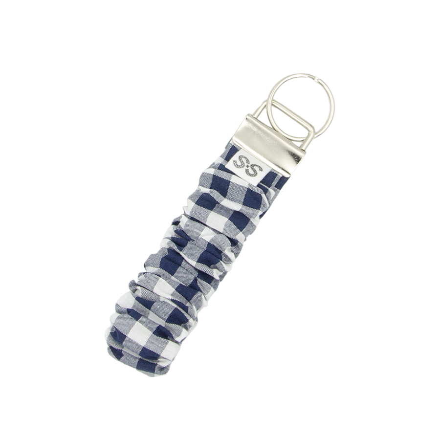 Scrunchie Hands-free Key Wristlet - Navy Gingham