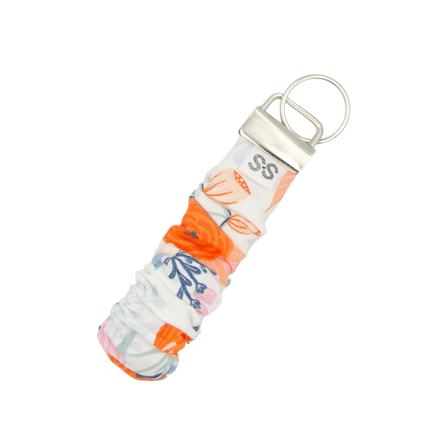 Scrunchie Hands-free Key Wristlet - Orange Floral
