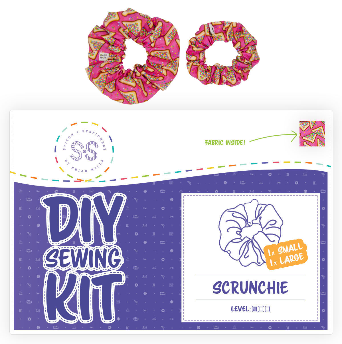 This DIY Scrunchie Sewing Kit has everything needed to create two stylish scrunchies - one petite and one large.